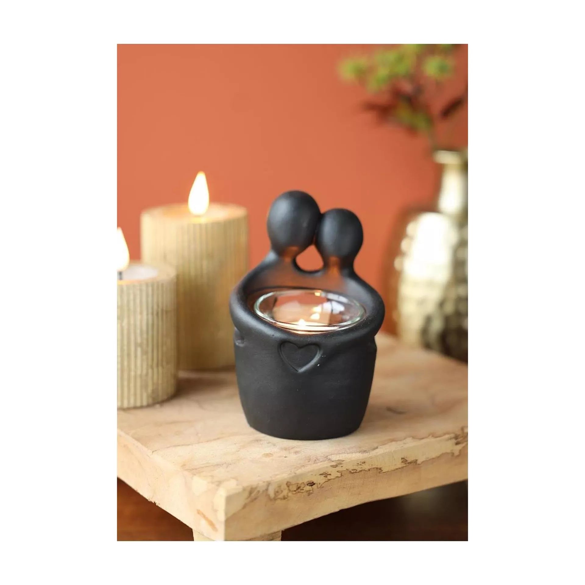 Theelichthouder Embrace zwart met inzetglas